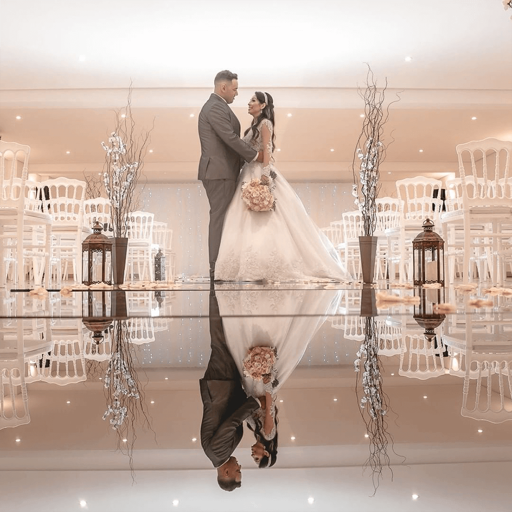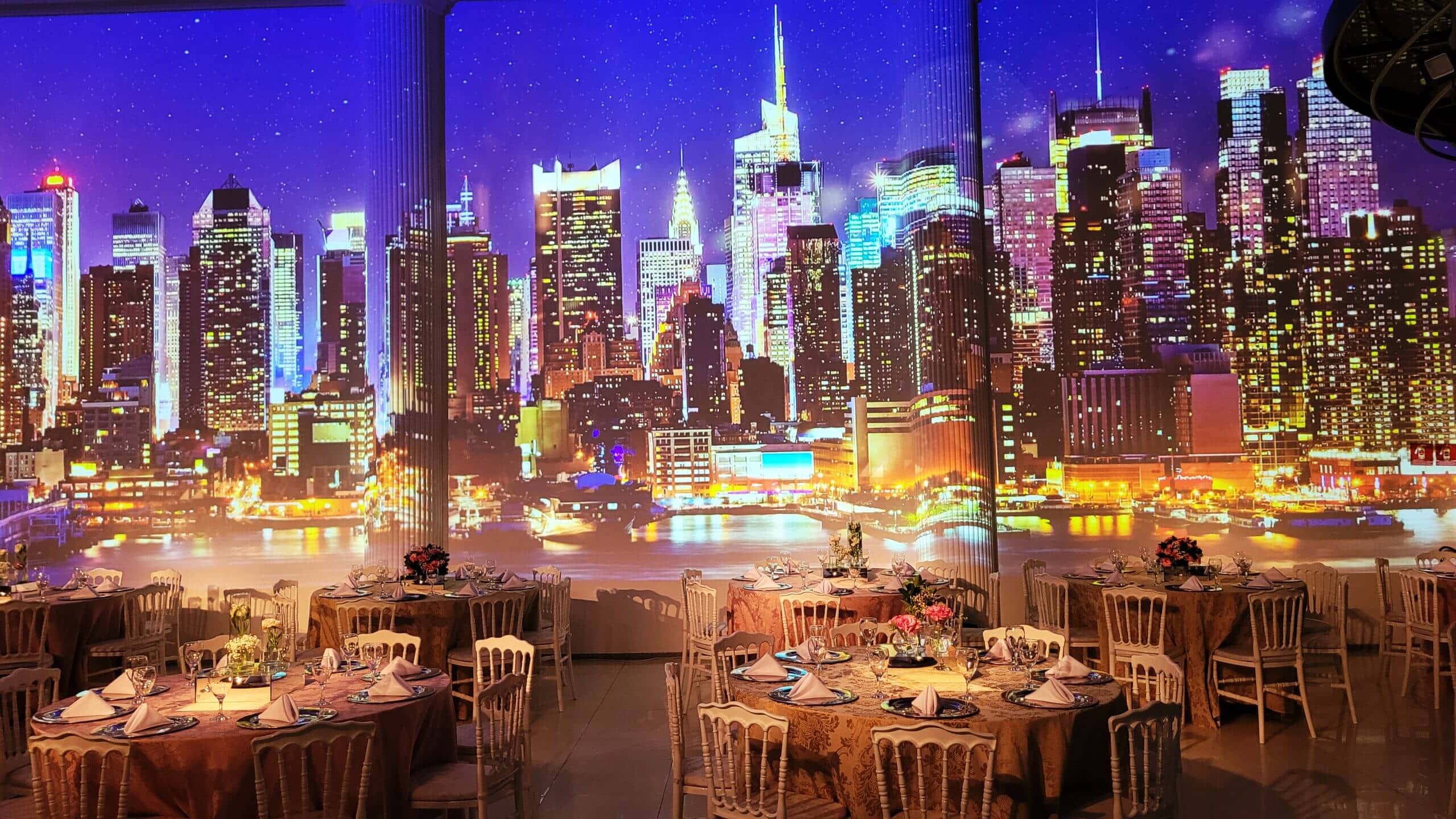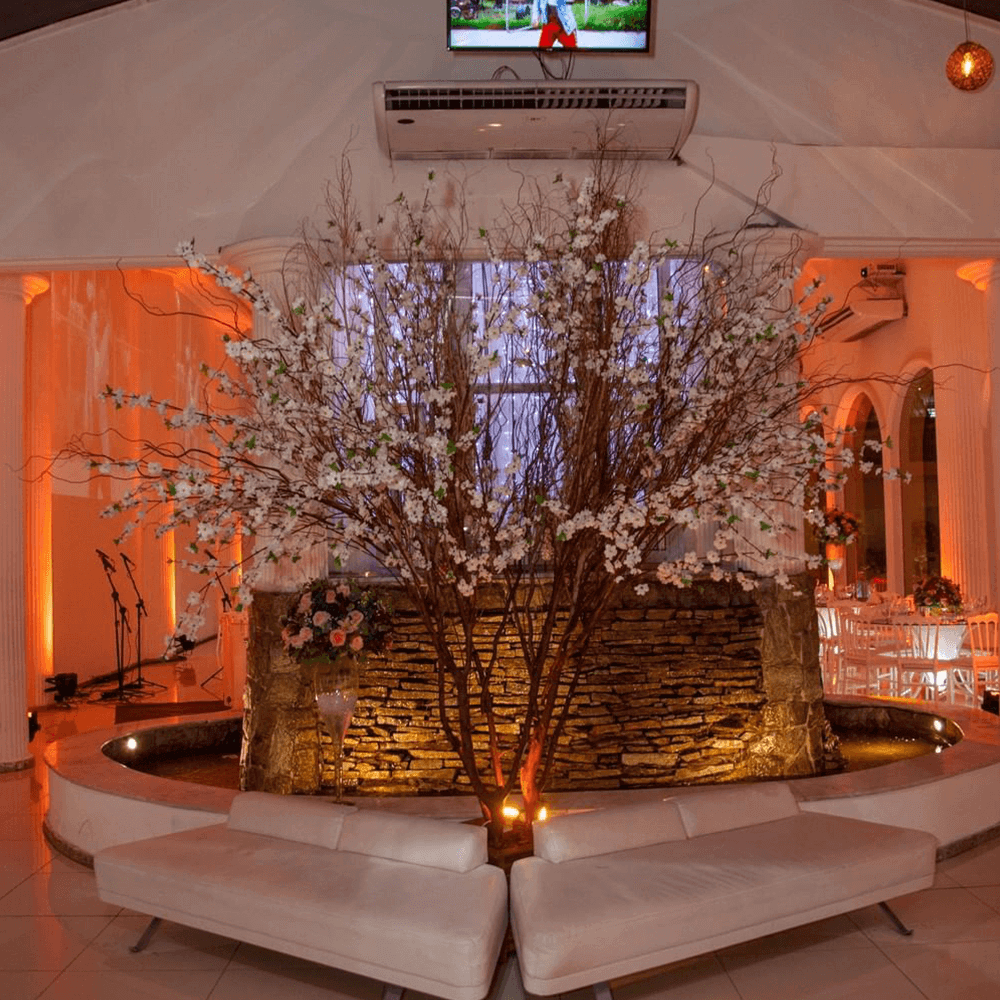 Nosso salão é um santuário de design e tecnologia. Uma arquitetura atemporal se encontra com a magia da projeção mapeada, que pode ocupar 100% da lateral do salão, criando um palco dinâmico para a sua valsa e balada.